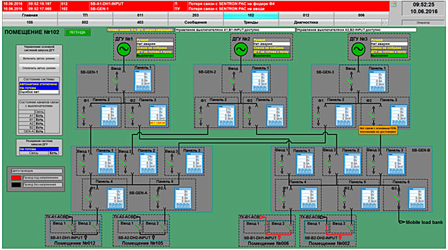 - Запуск и останов дизель-генераторных установок при потере напряжения на вводах от городской электросети;